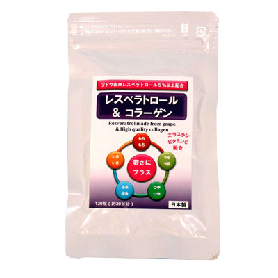 1個プレゼント企画あり『レスベラトロール&コラーゲン 120粒』3個で送料無料5個で梱包時に1個多く入れてプレゼント健康食品 サプリメント