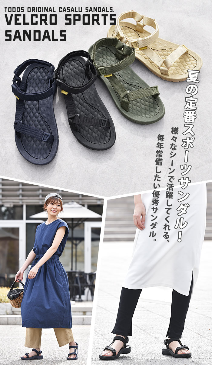 【限定クーポン配布】サンダル レディース 歩きやすい スポーツサンダル ベルクロサンダル TODOS トドス 靴 ぺたんこ 走れる 履きやすい 大人 シューズ ブラック 黒 ネイビー 紺 ベージュ カジュアル おしゃれ アウトドア フェス キャンプ 誕生日 プレゼント ギフト 母の日