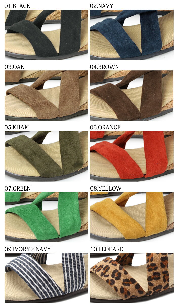 トドス (TODOS) フラットクロスサンダル TO-190 レディース ウェッジソール ヒール 01.ブラック"12171900" 02.ネイビー"12171901" 03.オーク"12171902" 04.ブラウン"12171903" 05.カーキ"12171904" 06.オレンジ"12171905" 07.グリーン"12171906" 08.イエロー"12171907" 09.アイボリー×ネイビー " 12171908" 10.レオパード " 12171909" トドス の フラットクロスサンダル です。