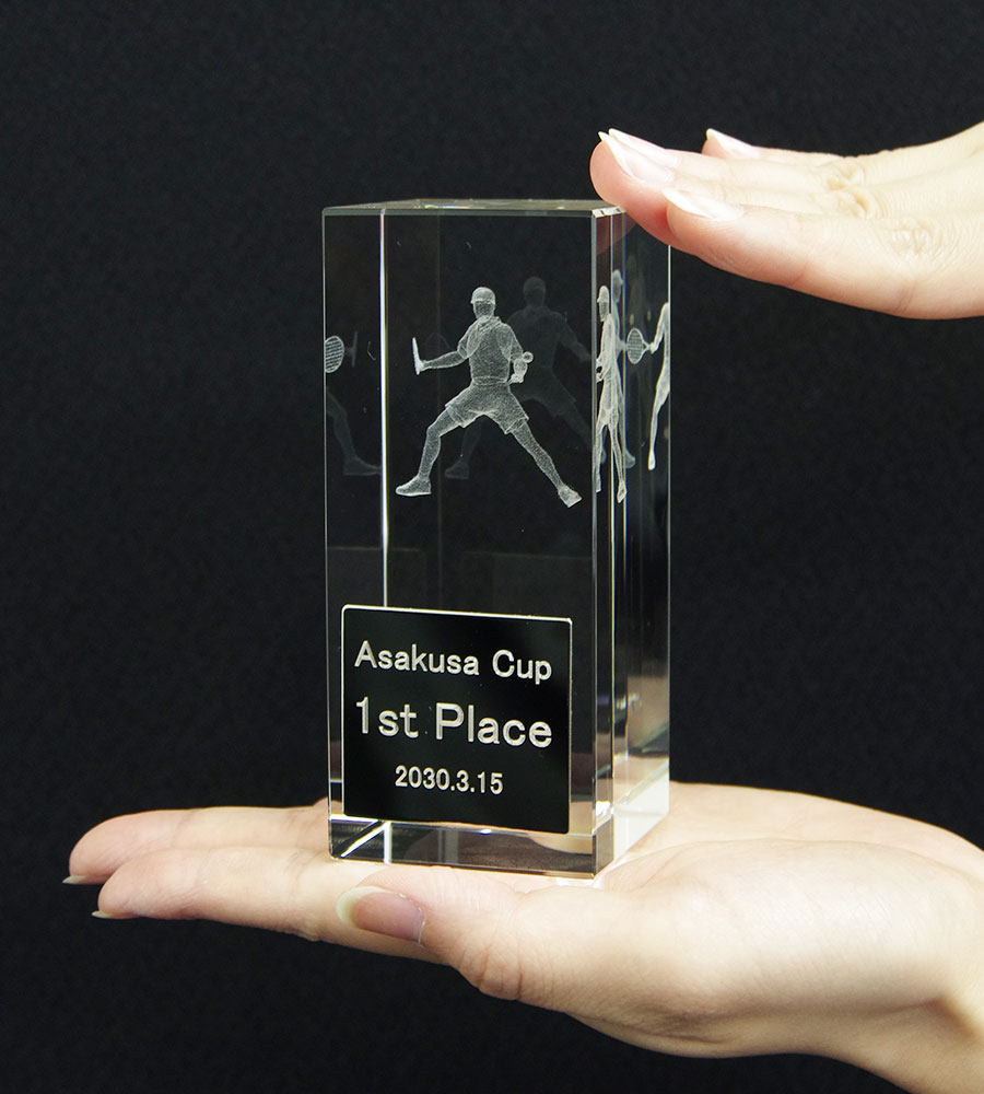 ★GW★この商品は5/8以降に出荷予定★テニスクリスタルトロフィー 3D 11.5cm 3サイズ 名入れ 卒団記念品 賞品 大会 コンペ イベント 卒業記念 表彰 優勝トロフィー トロフィ 3d《文字入無料》【OBW-02593 Aサイズ】高さ:11.5cm NO208
