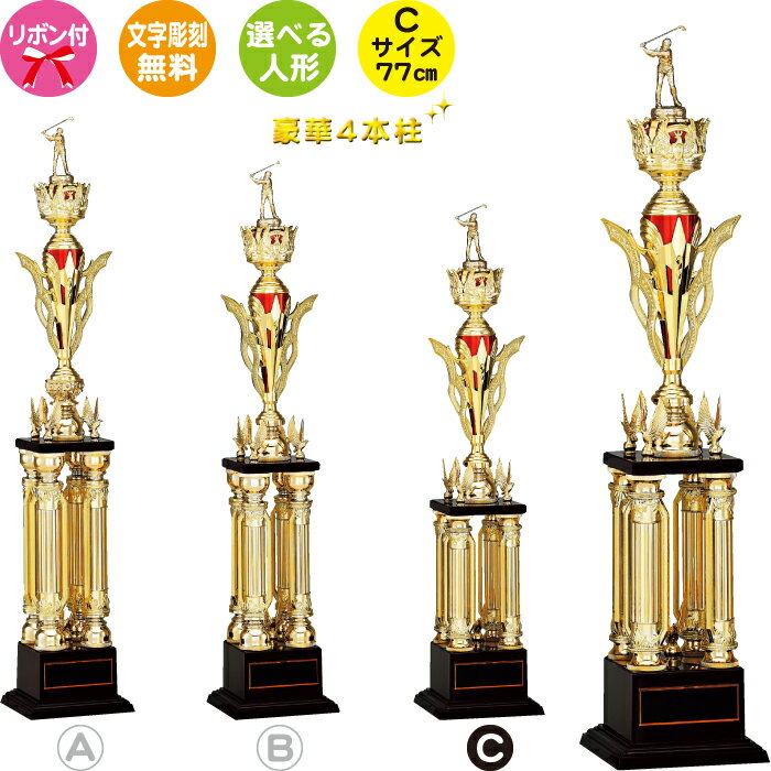 トロフィー 高さ77cm 優勝トロフィー ゴルフ 野球 サッカー バスケ バレー ボウリング カラオケ 音楽 記念トロフィー 大会 運動会 記念品 賞品 景品 トロフィー カップ トロフィー ゴルフ コンペ用品 ゴルフ 名入れ 無料 表彰トロフィー 4本柱 レッド トロフィー