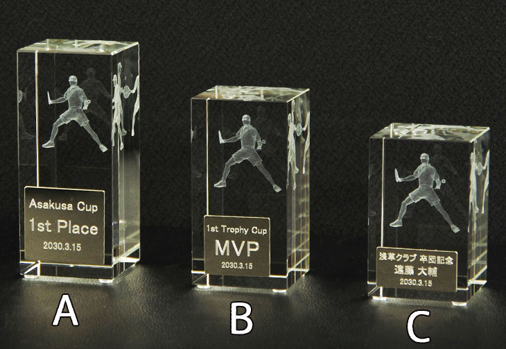 ‣ 文字入れ入力方法 ‣ 文字入れサンプルテニスクリスタルトロフィー 立体3D入 OBW-02593A